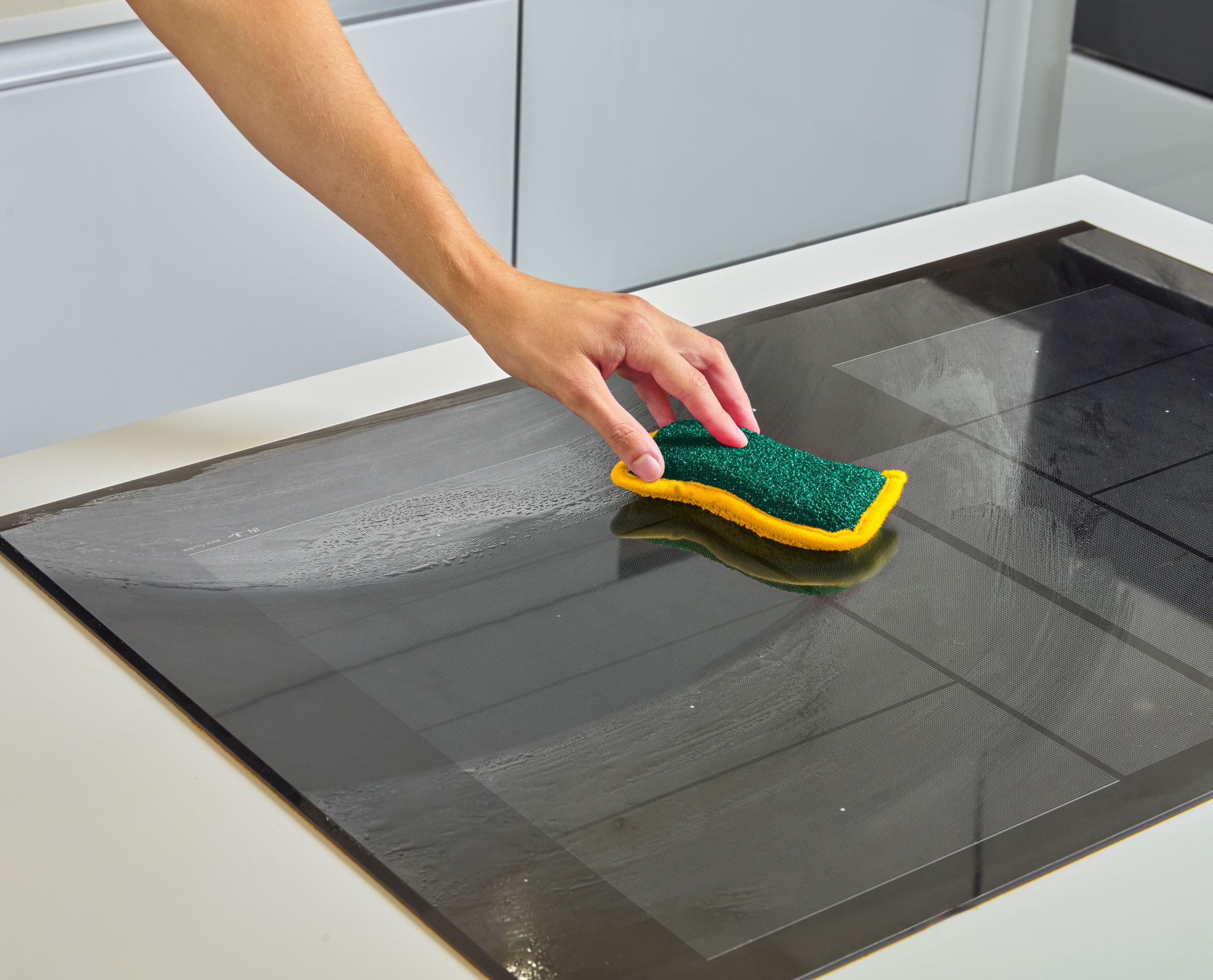 Sono l'innovativa spugna multiuso in microfibra, che dura fino a 1 anno*! Ho un doppio lato: un lato abrasivo anti-graffio e un lato in microfibra.